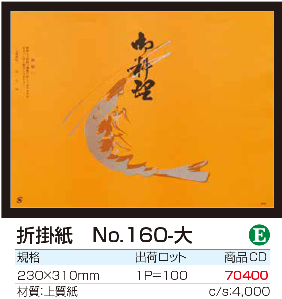 | ●入数:100枚入 ●サイズ:195×260mm ●材質:上質紙 商品説明:折掛紙を使用することで、食卓に彩りと品を演出します |