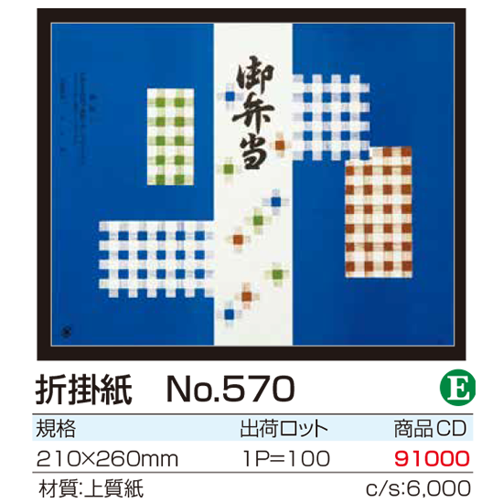 | ●入数:100枚入 ●サイズ:210×260mm ●材質:上質紙 商品説明:お弁当用の折掛紙で、食卓に彩りと品を演出します |