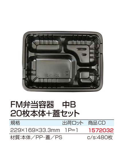 FM弁当容器 中B 20枚本体+蓋セット