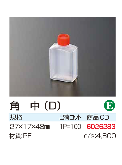 ¥578 (100個入) 27mm×17mm×48mm 型番:6026283 |