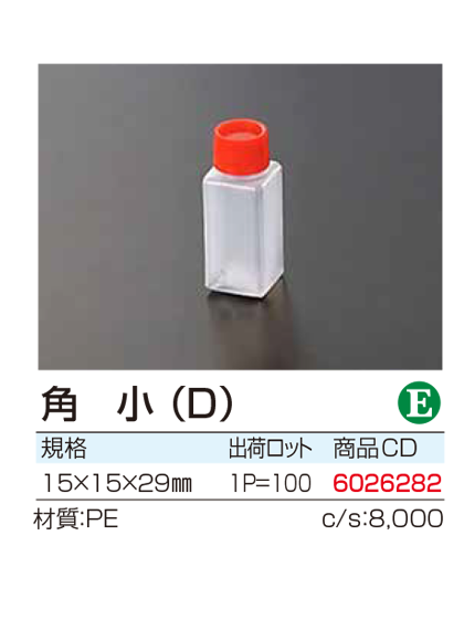 ¥358 (100個入) 15mm×15mm×29mm 型番:6026282 |