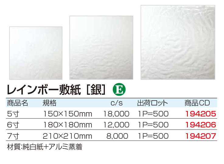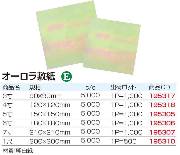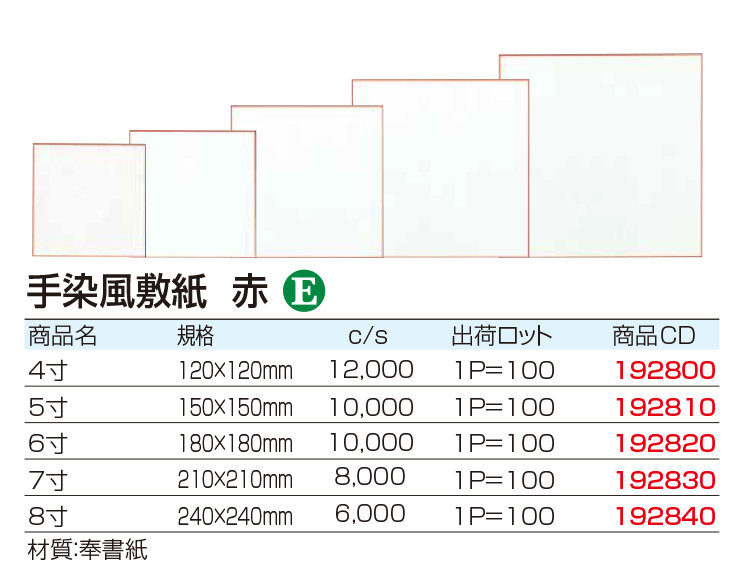 ¥3045 (1000枚入) 195mm×195mm 型番:190252 |