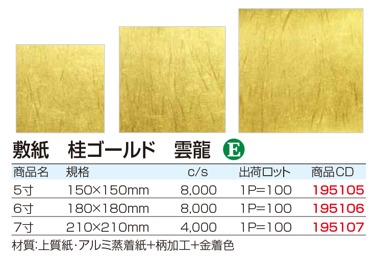| ●入数:100枚入 ●サイズ90×90mm ●材質:純白紙・アルミ蒸着紙+柄加工 商品説明:敷紙のサイズも取り揃えております 会席料理やお祝い事など、場面に合わせてご使用下さい |